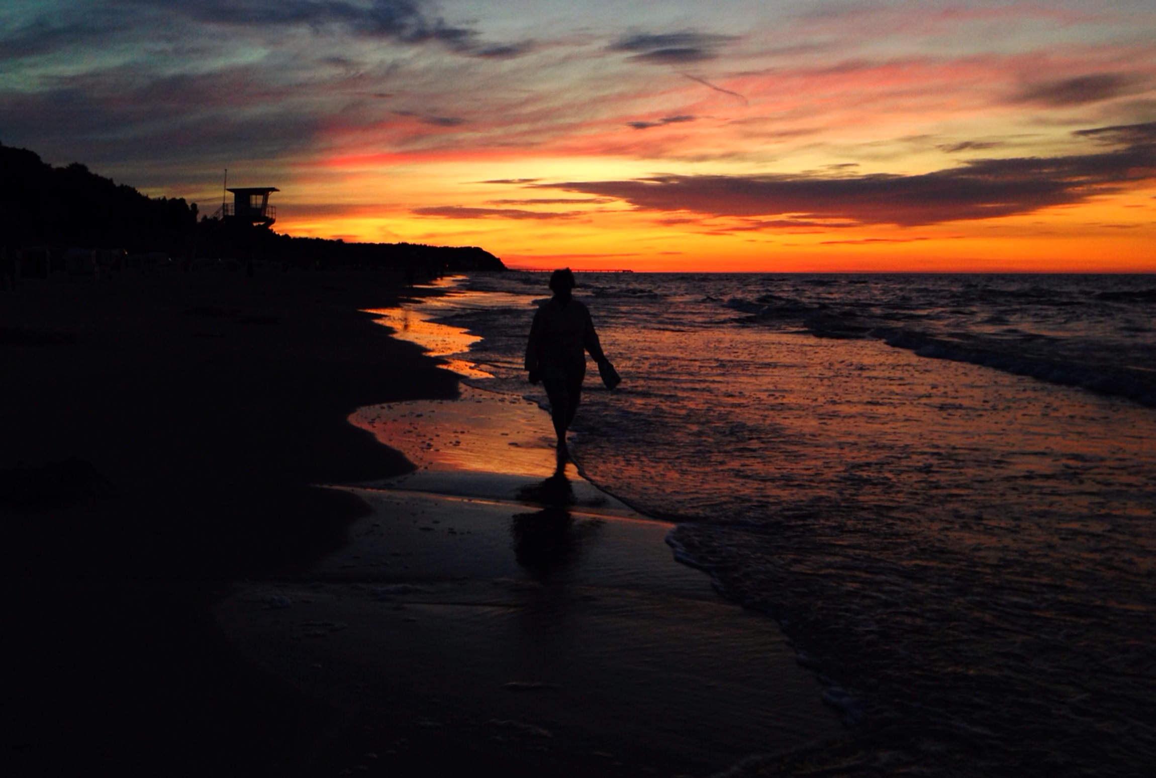 Mein Blick reicht endlos in die Weite. Schaut nichts als Meer, Meer und noch mehr Meer. Wellen werfen stumm weiße Gischt auf den Sand. Die Welt ist leer gefegt an diesem Sommerabend. Das ganze Stranduniversum nur für mich.