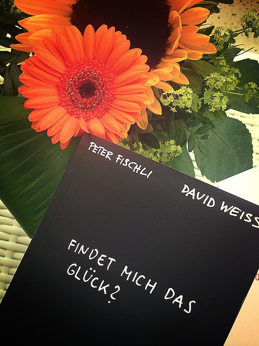 Und finde darin nur noch mehr Fragen. Von vorn bis hinten. Von hinten nach vorn. Fragen über Fragen. Nur die Antworten, die ein Buch doch normalerweise zu geben pflegt und ganz besonders solche Glücksverheißer, fehlen. Gekrakel auf jeder Seite – weiß auf schwarz, wirr nummeriert, durchgestrichen, mit infantilen Zeichnungen dekoriert. Was haben sich die Herren Autoren dieses monochromen Blattwerkes namens Fischli und Weiss nur dabei gedacht? Es ist, als würde mich dieses kleine Büchlein verhöhnen. Auslachen, weil ich völlig ratlos in es hinein und wieder heraus schaue. Verwirrter. Unwissender im Nachgang als zuvor.