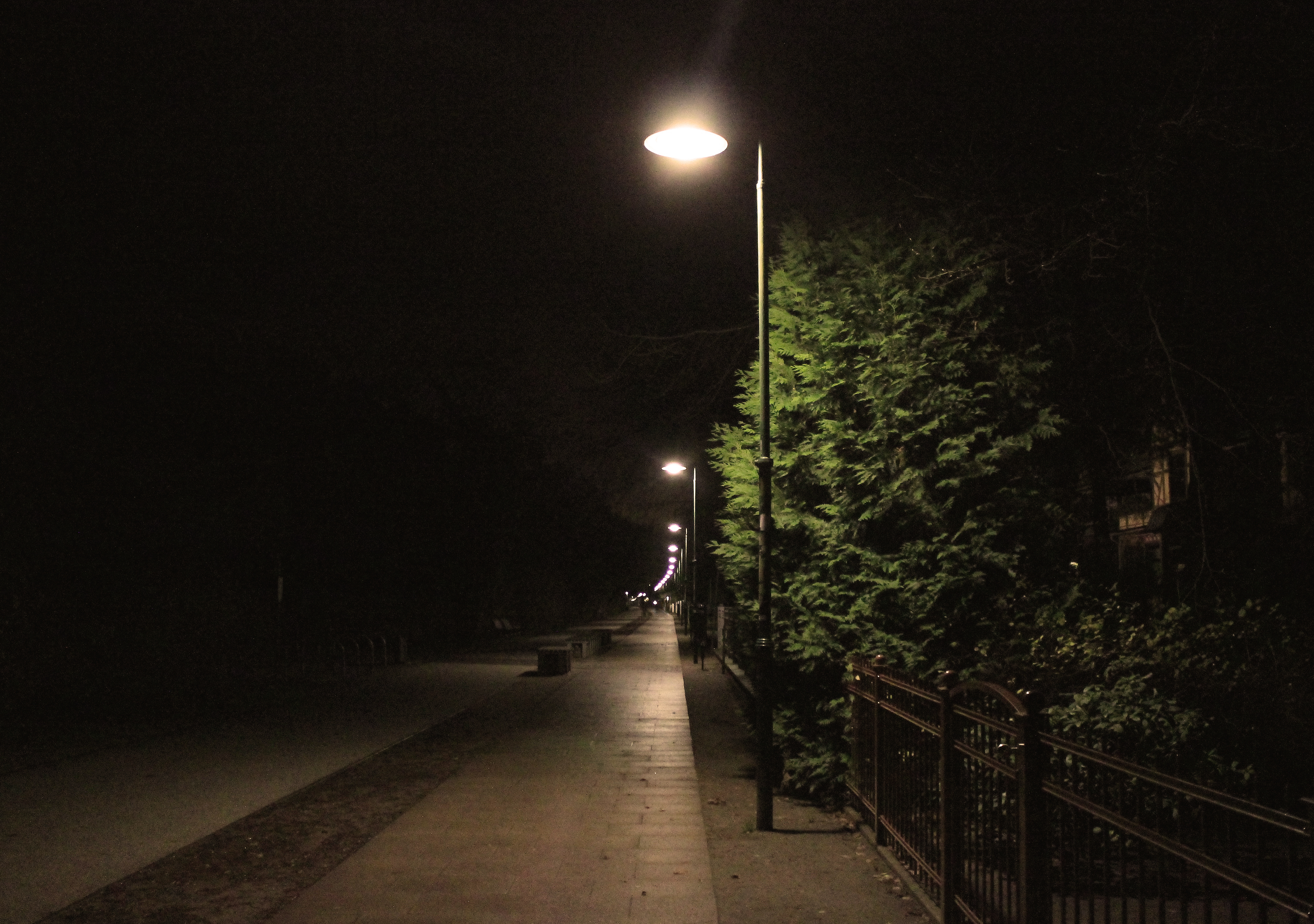 Die Promenade – wie ein schwarzer Tunnel liegt sie vor mir. Menschenleer um diese nachtschlafende Zeit. Das Leben hat sich nach drinnen verkrümelt. In kuschelige Wärme. Hinter dicke Vorhänge. Unter muschelige Decken voller Zweisamkeit. Der Vollmond trägt heute einen Hof, hängt im schwarzen Nichts wie ein blindes Spiegelei. Herbstzeitlos. Sanfte Wellen rauschen in mein Ohr. Das alte Laub an den Büschen raschelt leise im Wind. Und die Kronen der Kiefern raunen mir ihre Lieder zu.