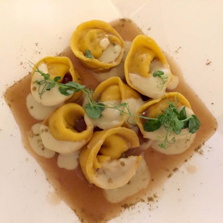 Kulinarisch ist Rom ein absoluter Volltreffer. Jeden Abend anders. Jeden Abend zum Dahinschmelzen. Hausgemachte Tortelli gefüllt mit Kaninchen an einer Fenchel-Kümmel-Sauce. Unglaublich gut! Den Restaurantleiter freut’s.