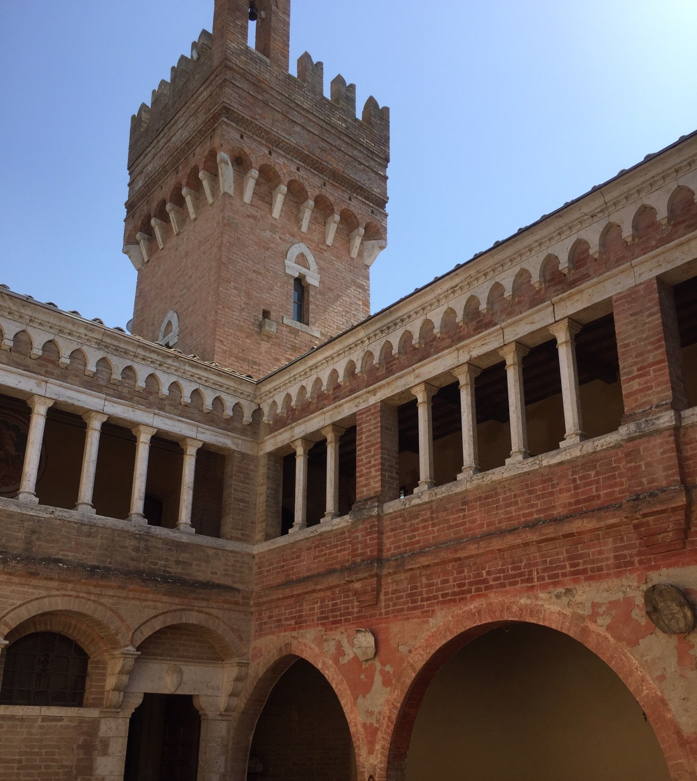 Wie einem Märchen entsprungen, erscheint hinter einer Anhöhe das mittelalterliche Schloss mit Laubengängen und Türmchen. Ich tauche ein in eine andere Welt und eine andere Zeit. Dicke, bemalte Wände und Holzdecken, alte Kamine und Möbel, die ganz sicher schon viele Generationen kommen und gehen gesehen haben. Hier ist der Shabby Chic in den Räumen echt. So viele verwinkelte Gänge und Zimmer, dass ich mich immerzu verlaufe.