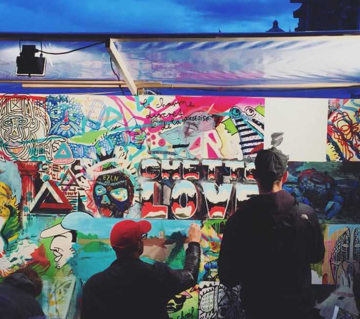 Art to go © Sandra GrüningStraßenkunst auf dem Buskers Bern auf dem Pläfä. Das Quadrat Kunst gibt’s hier zum Mitnehmen in der Pizza-Box. Und an jeder Ecke eine Band vom Feinsten. Von Swing bis Reagga und Jazz. Meine Cousinen und ich lieben es, tanzen durch die Gassen, haben Spaß.