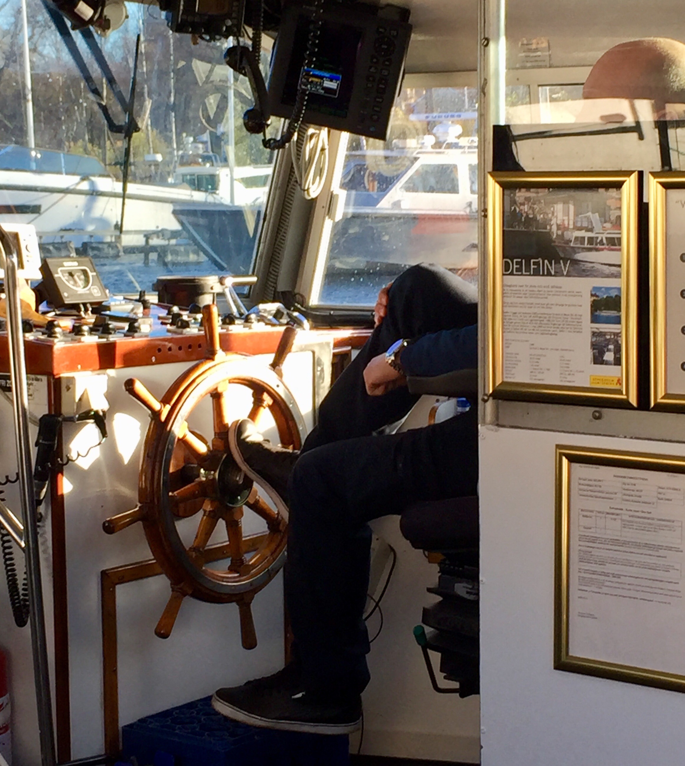 Navigieren auf Schwedisch © Sandra GrüningZur richtigen Zeit am richtigen Ort kann ich nur sagen. Denn just in dem Moment, in dem ich am Landungssteg vorbeikomme, will eine Kanaltour ablegen. Der Stockholm-Pass ist eine klasse Erfindung. Bootstouren, Bustouren, Museen – alles mit einem Pass. Also reingehüpft und Leinen los.