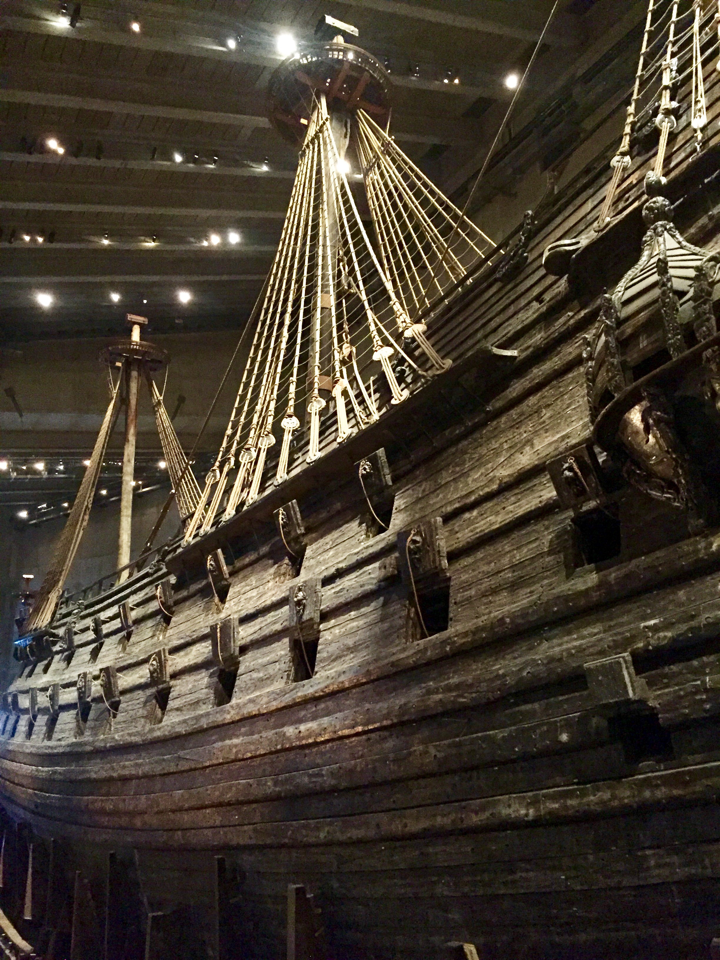 Doch wurde es in den 1960ern aus 30 Metern Ostsee-Tiefe geborgen und ist nun das einzige erhaltene Schiff aus dem 17. Jahrhundert. Und was für eines! Eines, auf das die Stockholmer zu Recht stolz sind: Drei riesige Masten, zehn Segel, 52 Meter vom Masttopp bis zum Kiel und 69 Meter vom Bug bis zum Heck und 1.200 Tonnen Gewicht. Ohne alle Kanonen, die es schließlich zum Sinken brachten. Wow!