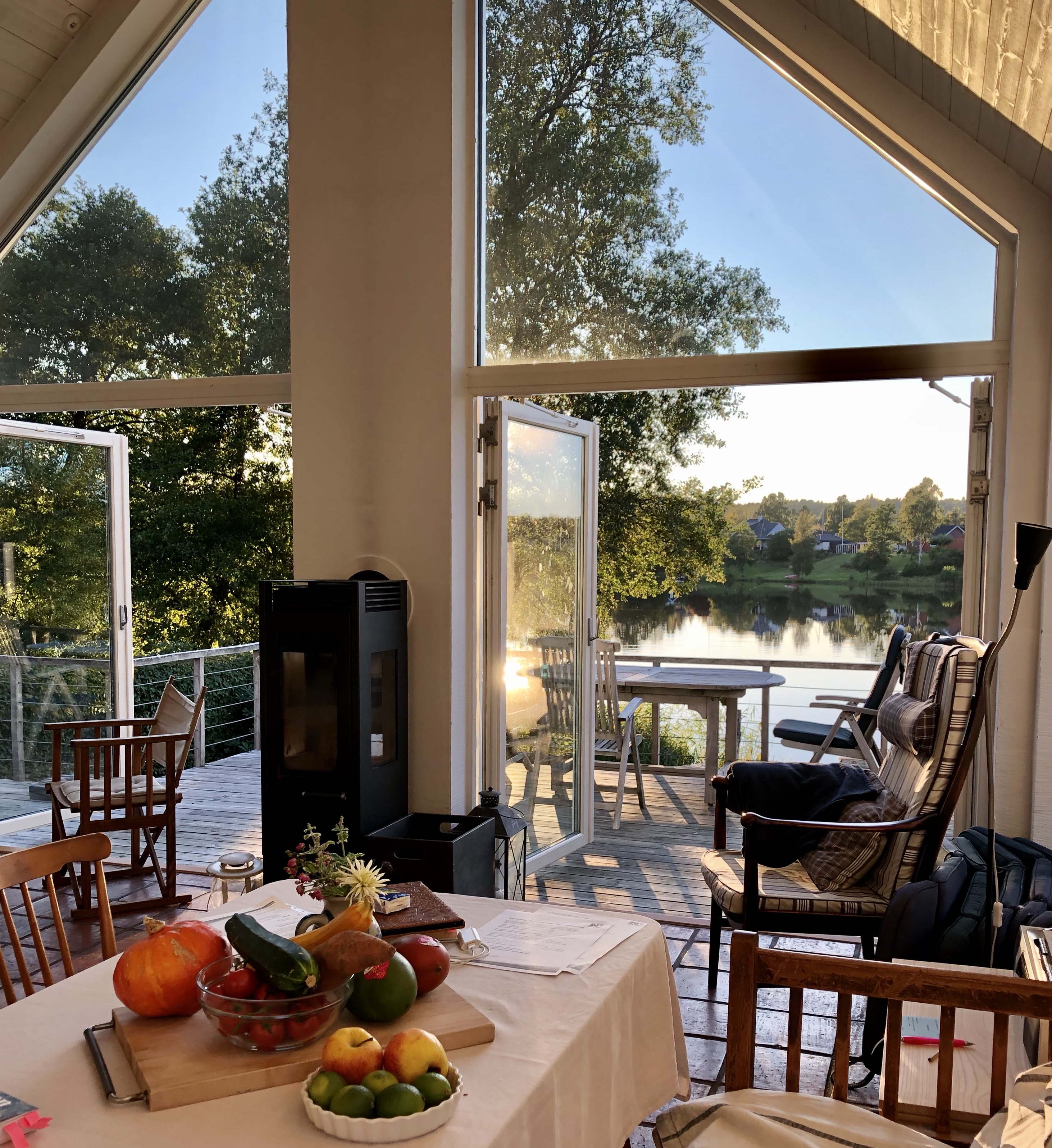 Und dann sind wir da! Die untergehende Sonne glitzert auf dem blank geputzten Spiegel des Sees. Der kleine Steg vor unserem Haus ist wie der Eingang zum Paradies. Glas wo sonst Mauern die Sicht verblenden. Die Aussicht auf die kommende Zeit ist frei von allen Zwängen. Das kleine Boot am Ufer hat nur auf uns gewartet. Darauf, uns ins Lagom hinaus zu schippern.